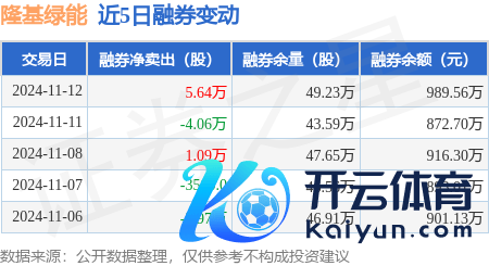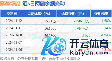 本站音信,11月12日,隆基绿能(601012)融资买入5.98亿元,融资偿还6.94亿元,融资净卖出9563.38万元开云体育,融资余额55.11亿元。
