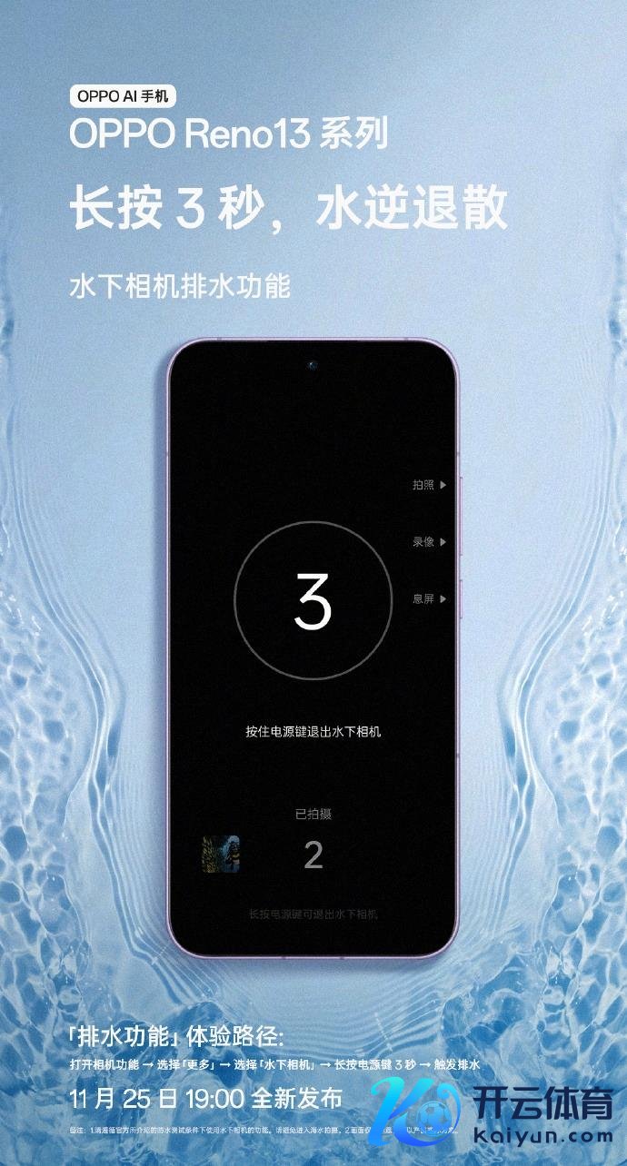 11月20日音尘,OPPO官宣OPPO Reno 13系列将因循IP69级防尘防水,化身水下相机,因循水下拍照和视频录制功能。